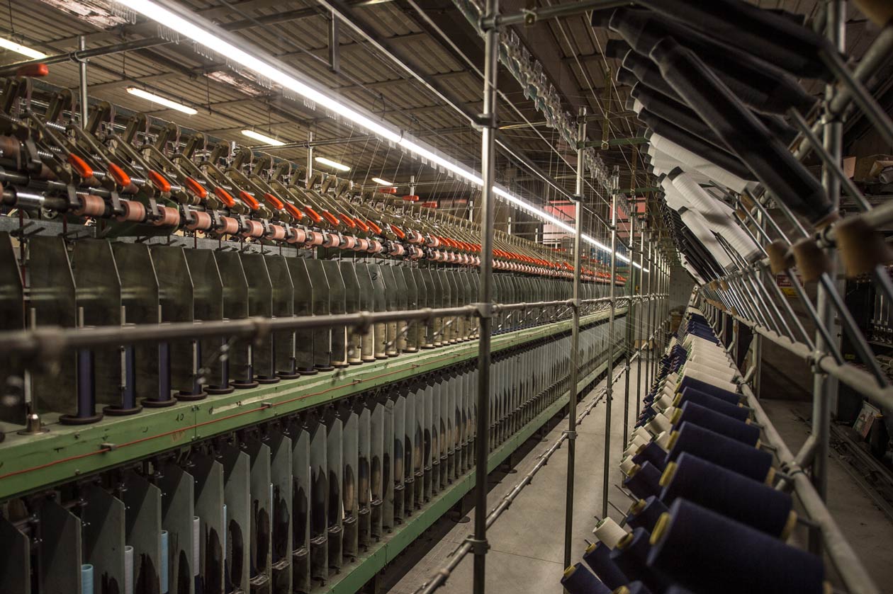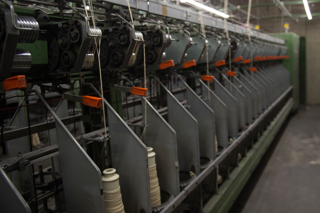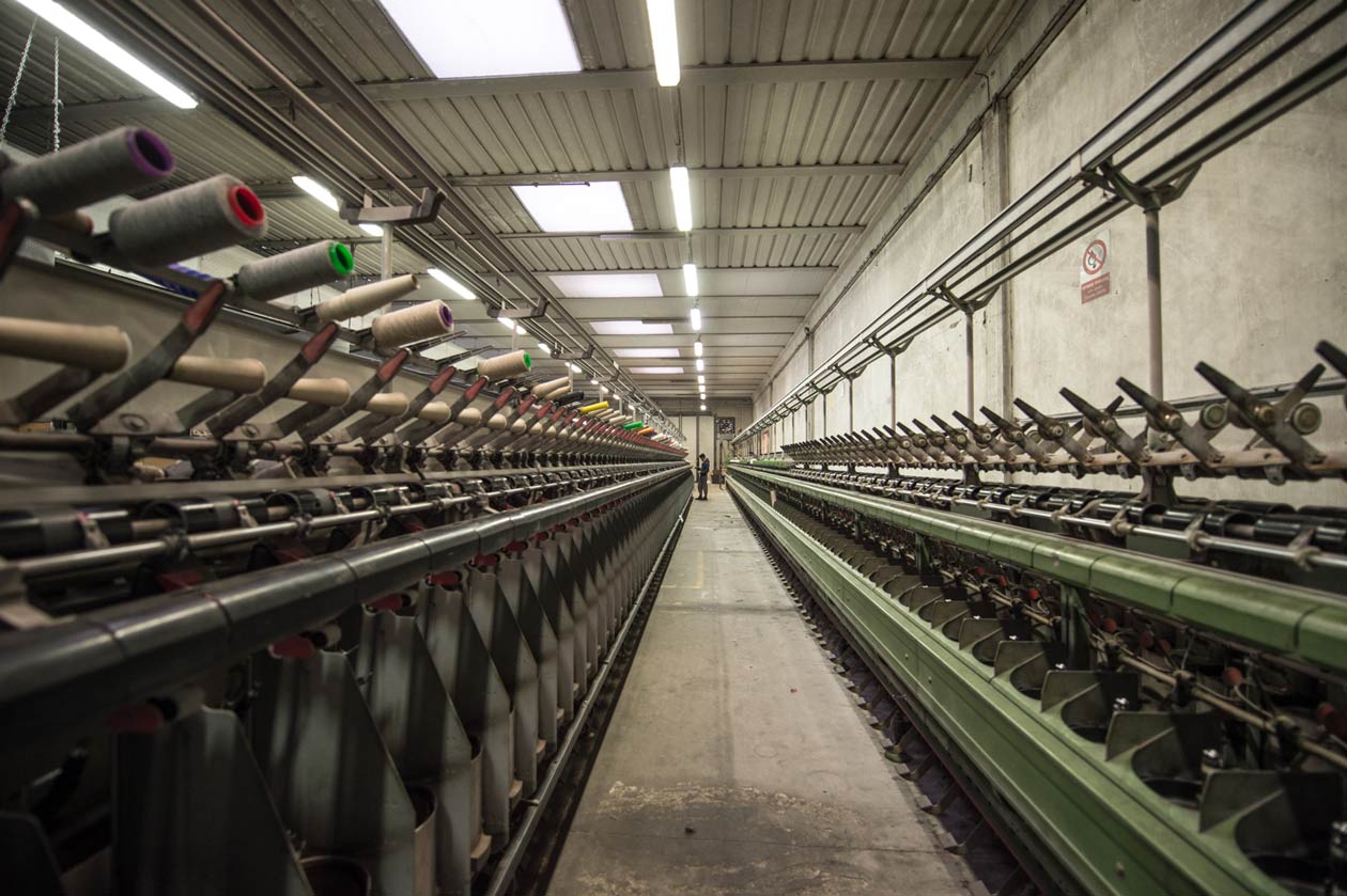 Ambiente di produzione a temperatura e umidità controllata per ottime condizioni di lavoro, importante per filati di fibre animali di alta qualità (lane)